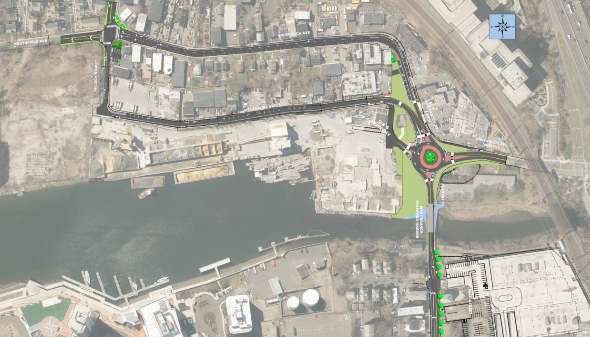 Part one is the first roundabout in Stamford, which is under construction at Greenwich Avenue and Pulaski Street. The city plans to transform the all-way stop intersection into a roundabout to help keep traffic flowing. It will also include “high-visibility” pedestrian crossings to make it easier for those walking to navigate it.
