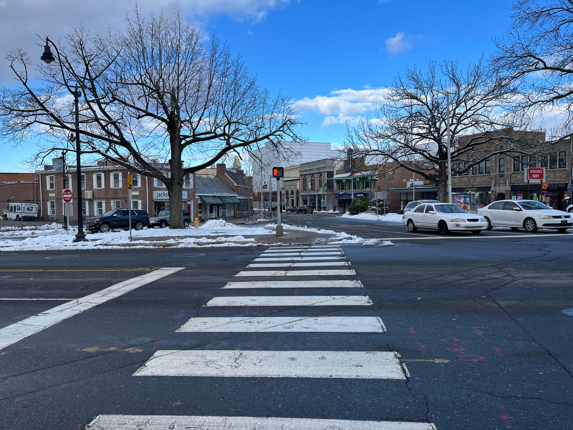 - Creating shorter pedestrian crossings and raising crosswalks—similar to how they are on Washington Street—throughout.