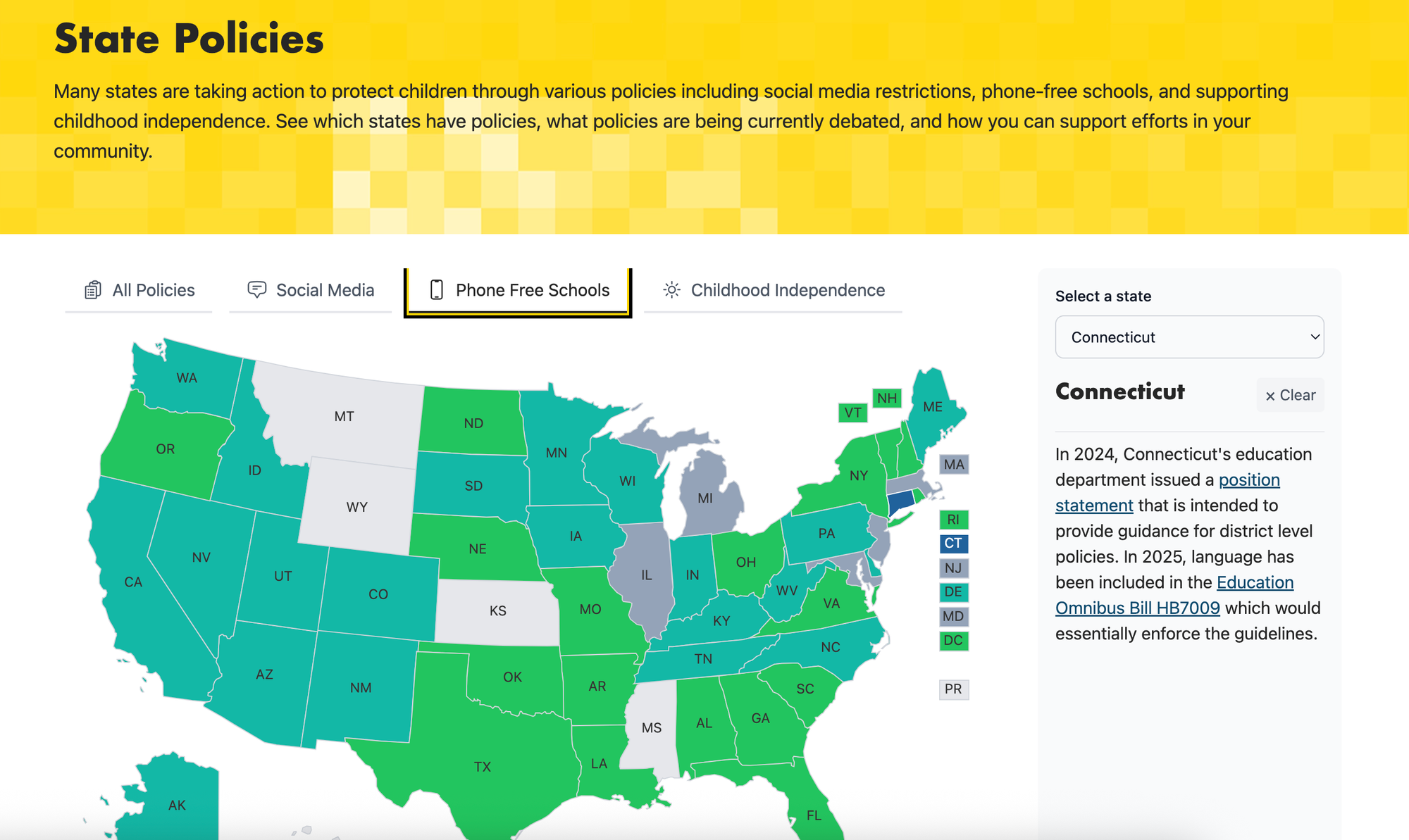 However, the Senate never took up the bill. So far all that’s been done at the state level is guidance from Connecticut State Board of Education. The board put out a position statement in 2024 titled “Personal Technology Use in Connecticut Schools: Impact of Social Media and the Use of Cell Phones of Student Learning and Mental Health.”